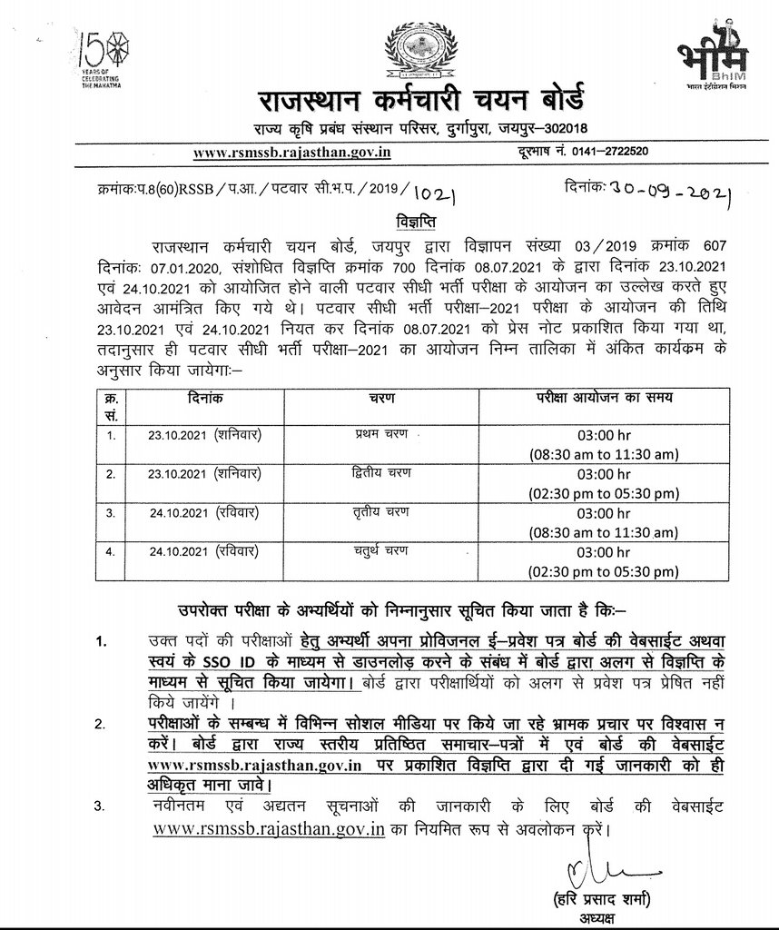 Rsmssb patwari exam date 2021 will be conducted on 23rd, 24th october 2021.